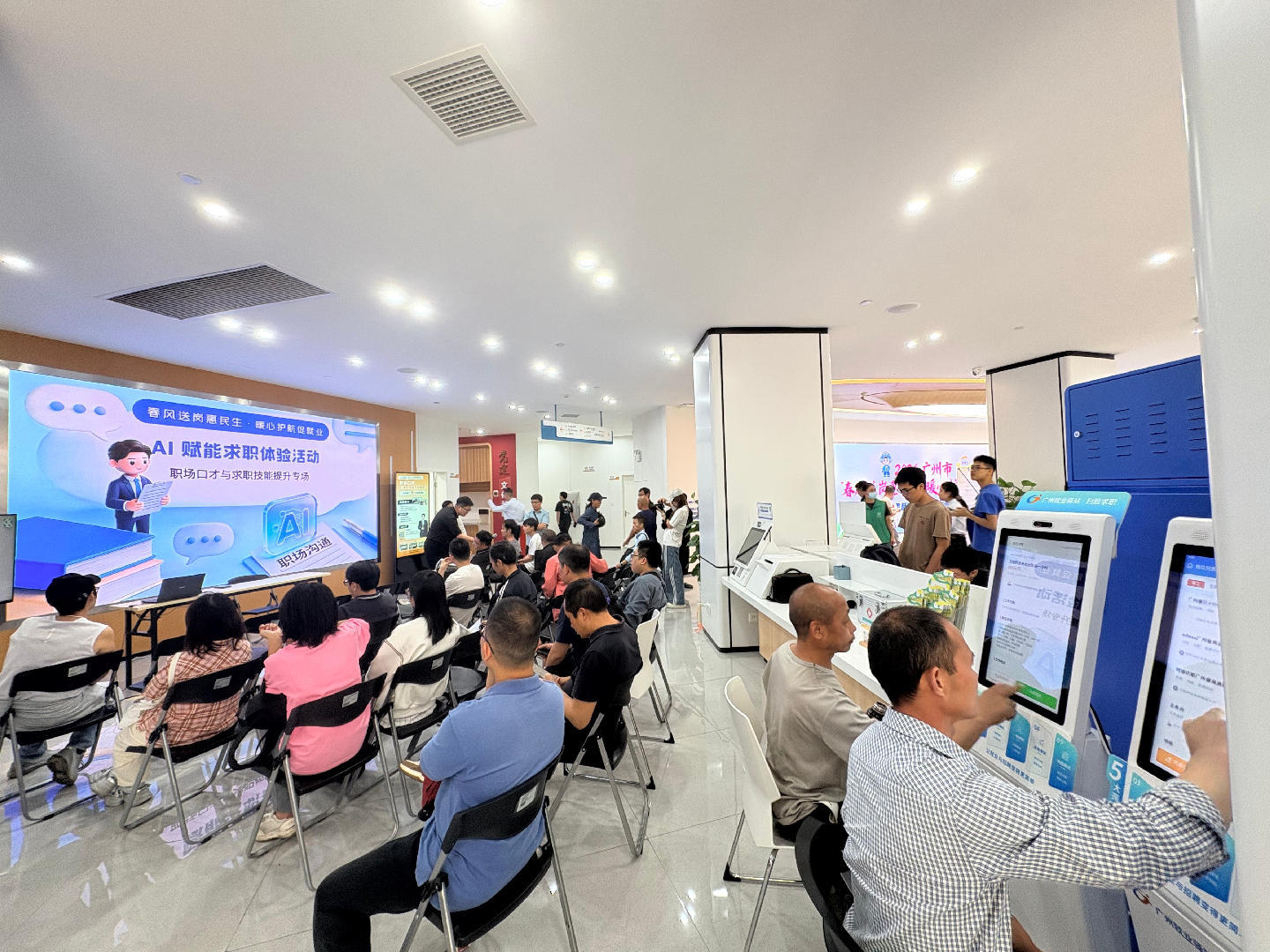 现场还设置“揾工小智”AI终端机,提供简历生成、AI模拟面试等服务,引导临时遇困人员体验“广州好揾工AI助手”智能客服、“广州公共招聘(广州好揾工)”小程序,以“掌上直达”的智能化服务24小时陪伴临时遇困人员。